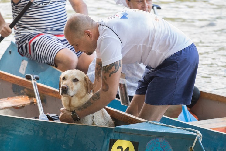 Dombai Mihály és barátai túrakenuval érkeztek meg a Baráthegyi Vakvezető Kutya Iskola piknikjére. Misi a kutyájáról nevezte el az eseményt: a „Körte Evezésen” látványos formában szervezett támogató gyűjtést a Baráthegyi Vakvezető Kutya Iskolának. Körte túrakenuval szokott a gazdájával utazni. Most is nyugodtan, a férfi lábánál ült a hajó elejében, miközben folyamatosan vízzel locsolgatták a nagy meleg miatt.